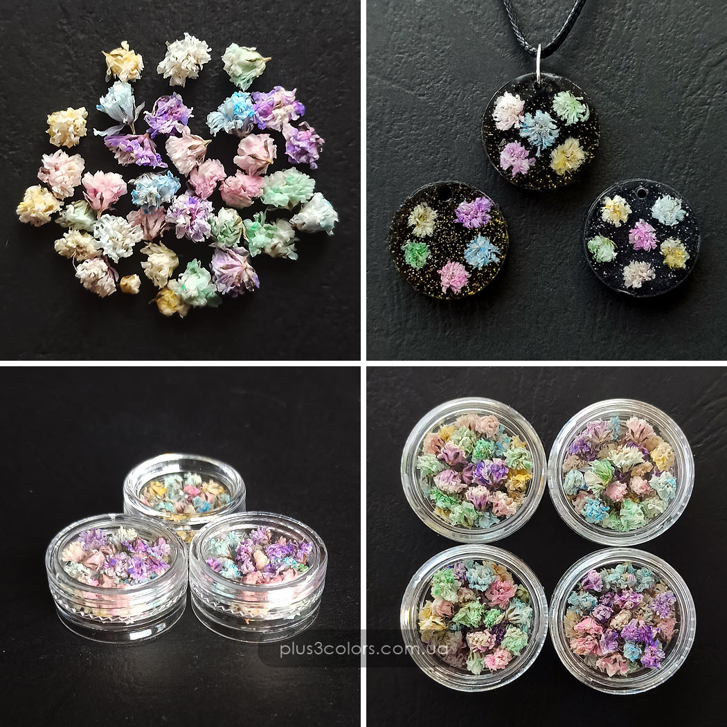Сухоцвіти дрібні, сухі квіти Гіпсофіла Райдужна для декорування виробів з епоксидної смоли