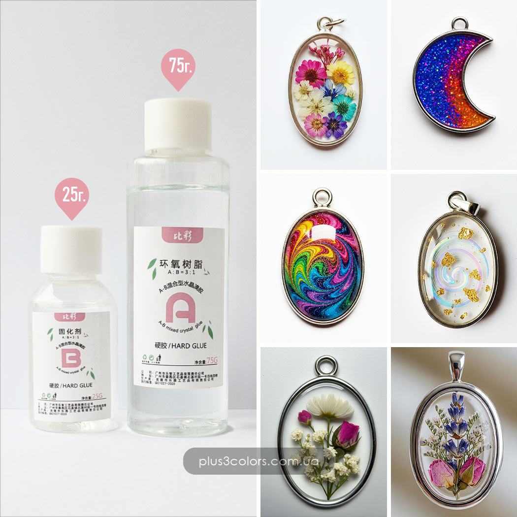 Высококачественная двухкомпонентная эпоксидная смола предназначена для создания прозрачных, твердых покрытий, ювелирных изделий, декоративных элементов и других творческих проектов. Смола обеспечивает кристальную прозрачность, высокую прочность и устойчивость к царапинам после полного отверждения. В комплекте два флакона: компонент A (75 г) и компонент B (25 г). Соотношение смешивания по весу — A:B = 3:1, по объему — A:B = 2.5:1. Идеально подходит для хобби, handmade и профессионального использования.
